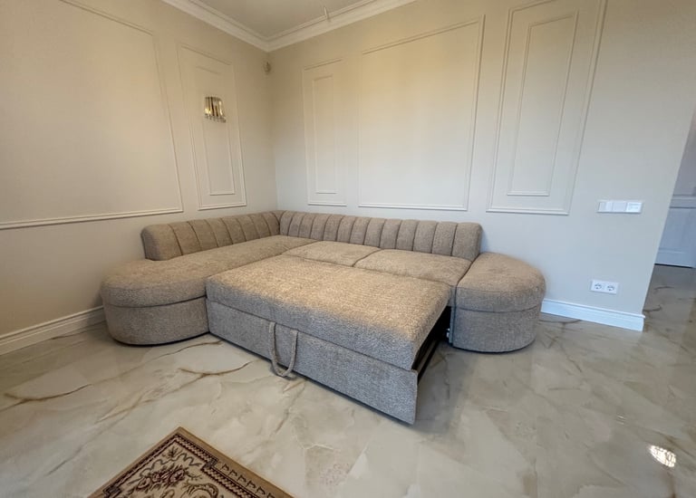 Puikūs minkšti baldai, kurie puikiai tiko mūsų svetainei – jaučiamės kaip namuose.
